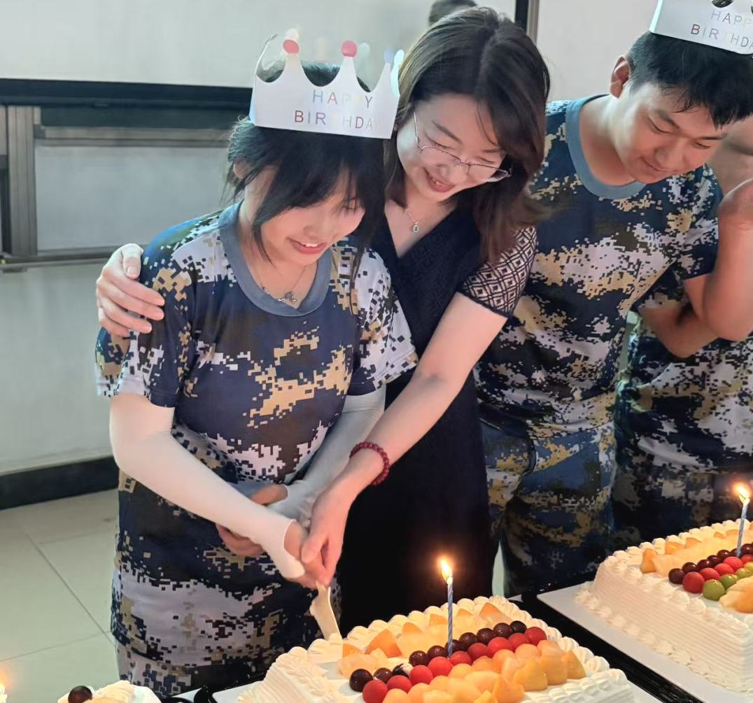 学院老师和同学们将精心准备的生日蛋糕推至舞台中央,在全场师生的共同见证下,新生们集体许愿,并分享了这份充满纪念意义的蛋糕。